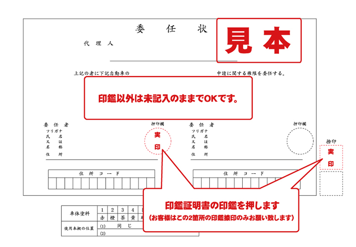 - 印鑑証明書(車両名義人の印鑑証明書で取得後2ケ月以内のもの)