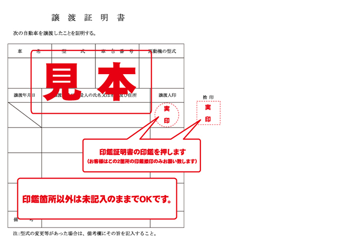 - 譲渡証明書(当サイトでダウンロードできます)・・・